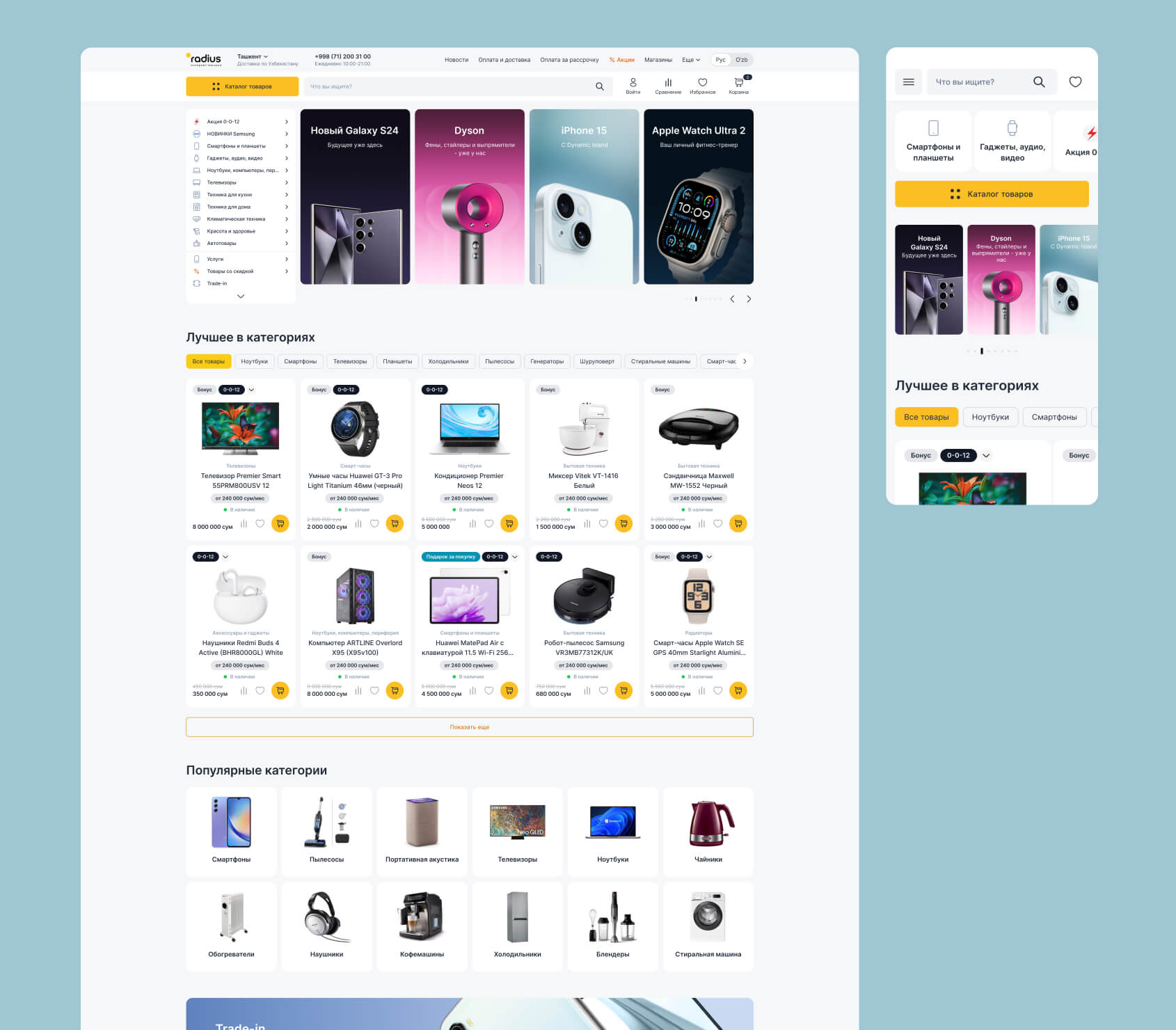 Мы полностью переосмыслили дизайн сайта интернет-магазина Radius, сохранив его суть, но сделав удобнее и современнее.